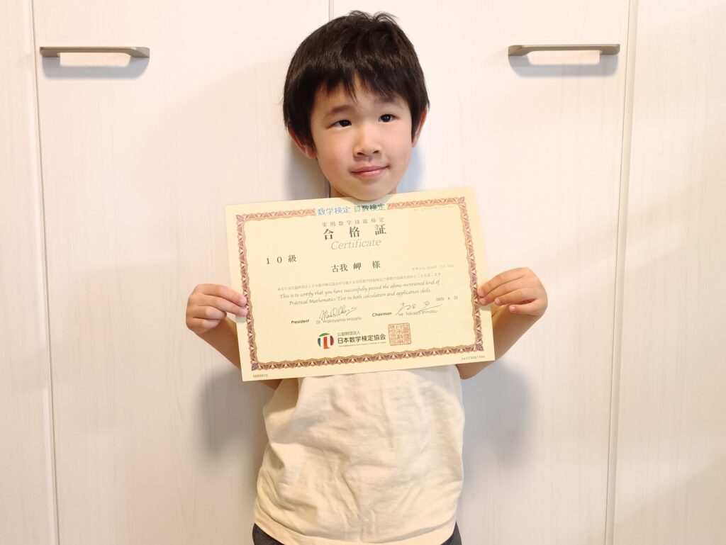 この度、算数検定10級(小学2年生レベル)に合格された小学1年生の岬さん。