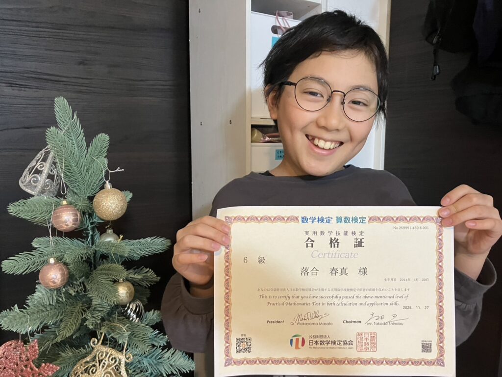この度、算数検定6級(小学6年生レベル)に合格された小学5年生の春真さん。