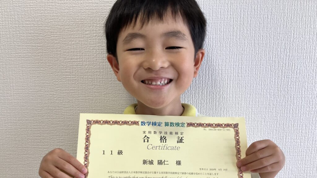 この度、算数検定11級(小学1年生レベル)に合格された年中の陽仁さん。